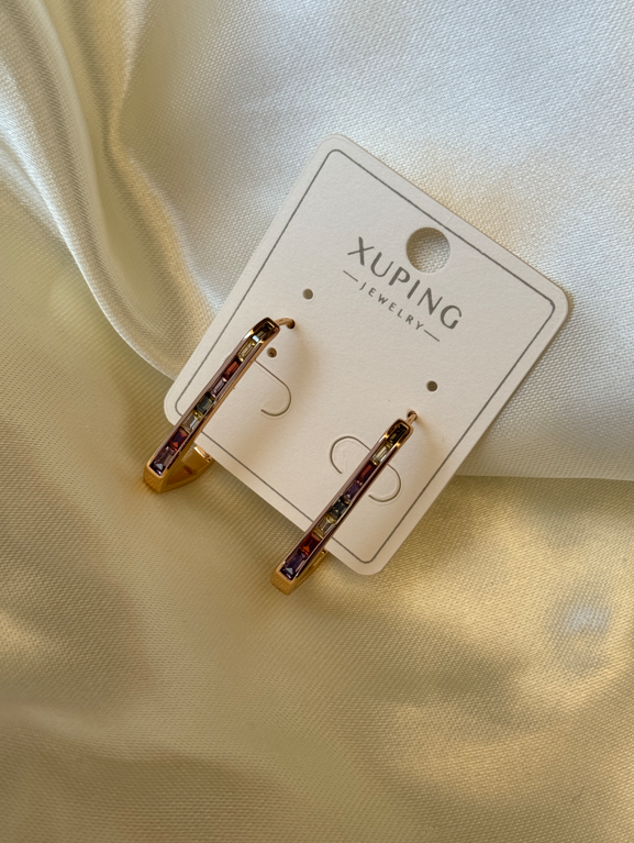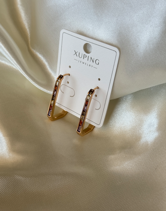 گوشواره دخترانه مستطیلی نگین دار ژوپینگ اصل کد 28643